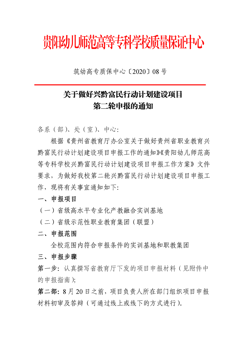 筑幼高专质保中心〔2020〕08号关于做好兴黔富民行动计划建设项目 第二轮申报的通知