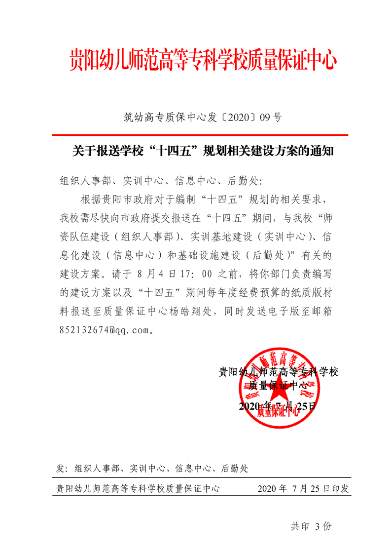 筑幼高专质保中心发〔2020〕09号关于报送学校“十四五”规划相关建设方案的通知