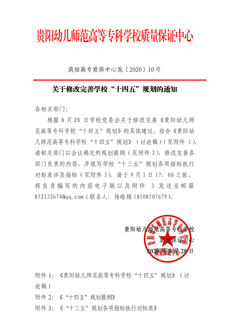 筑幼高专质保中心发〔2020〕10号关于修改完善学校“十四五”规划的通知