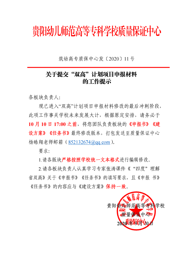 筑幼高专质保中心发〔2020〕11号 关于提交“双高”计划项目申报材料的工作提示
