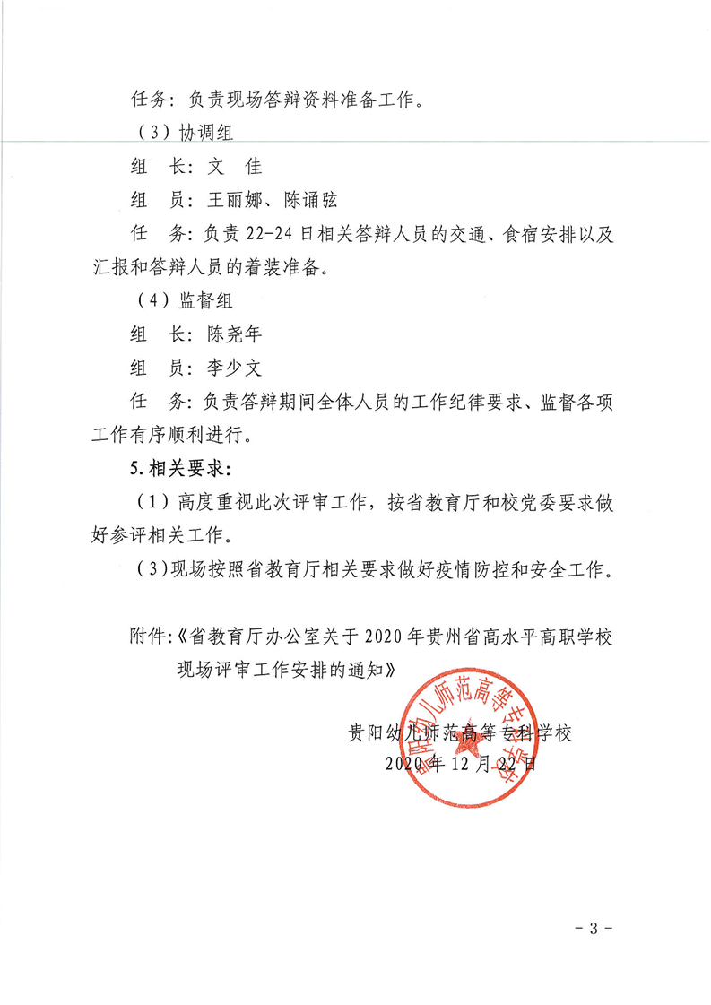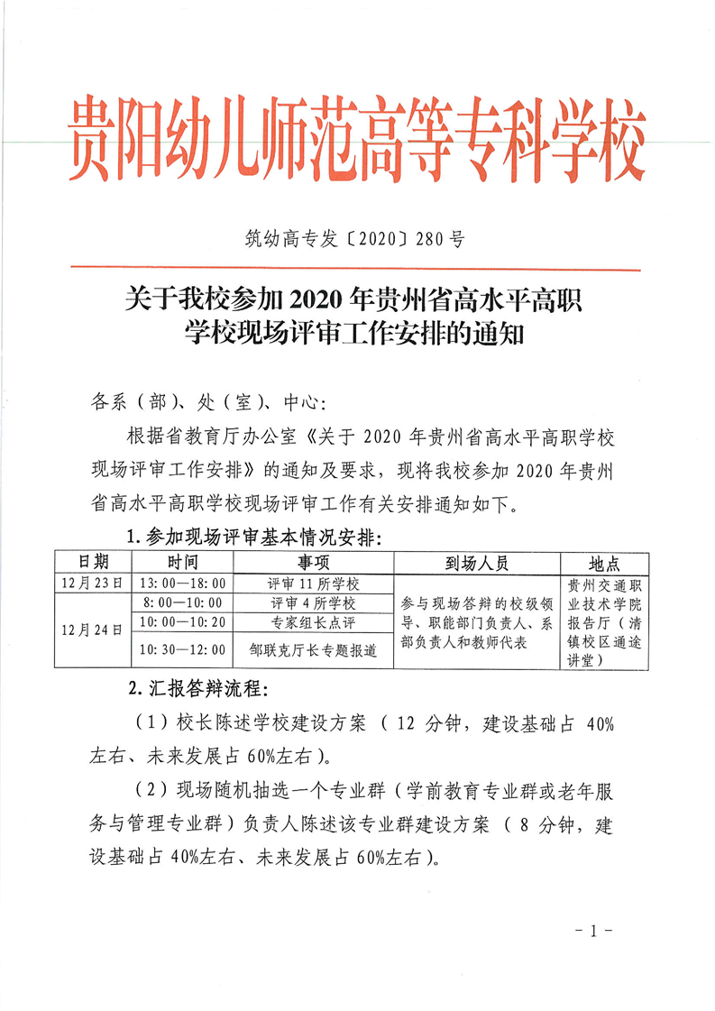 筑幼高专发〔2020〕280号关于我校参加2020年贵州省高水平高职学校现场评审工作安排的通知
